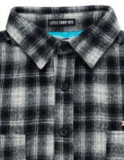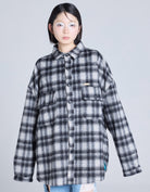 柔らかく起毛したチェック素材を使用したオーバーサイズジャケット。