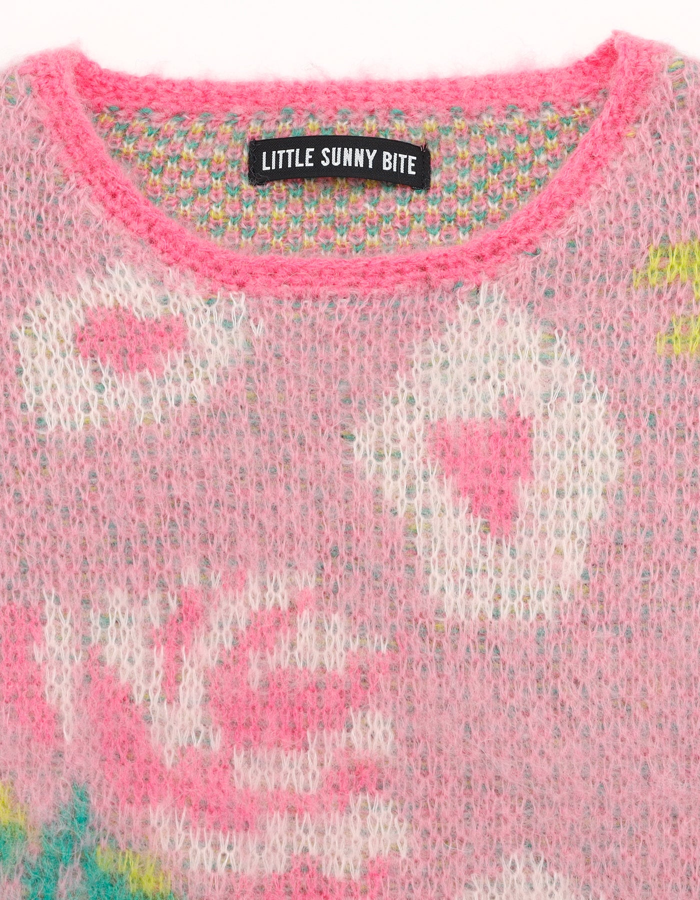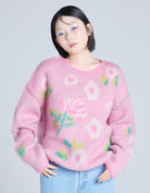 ふんわりとしたシャギー感と、LSBオリジナルの花柄モチーフが目を惹く主役級のニットトップス。