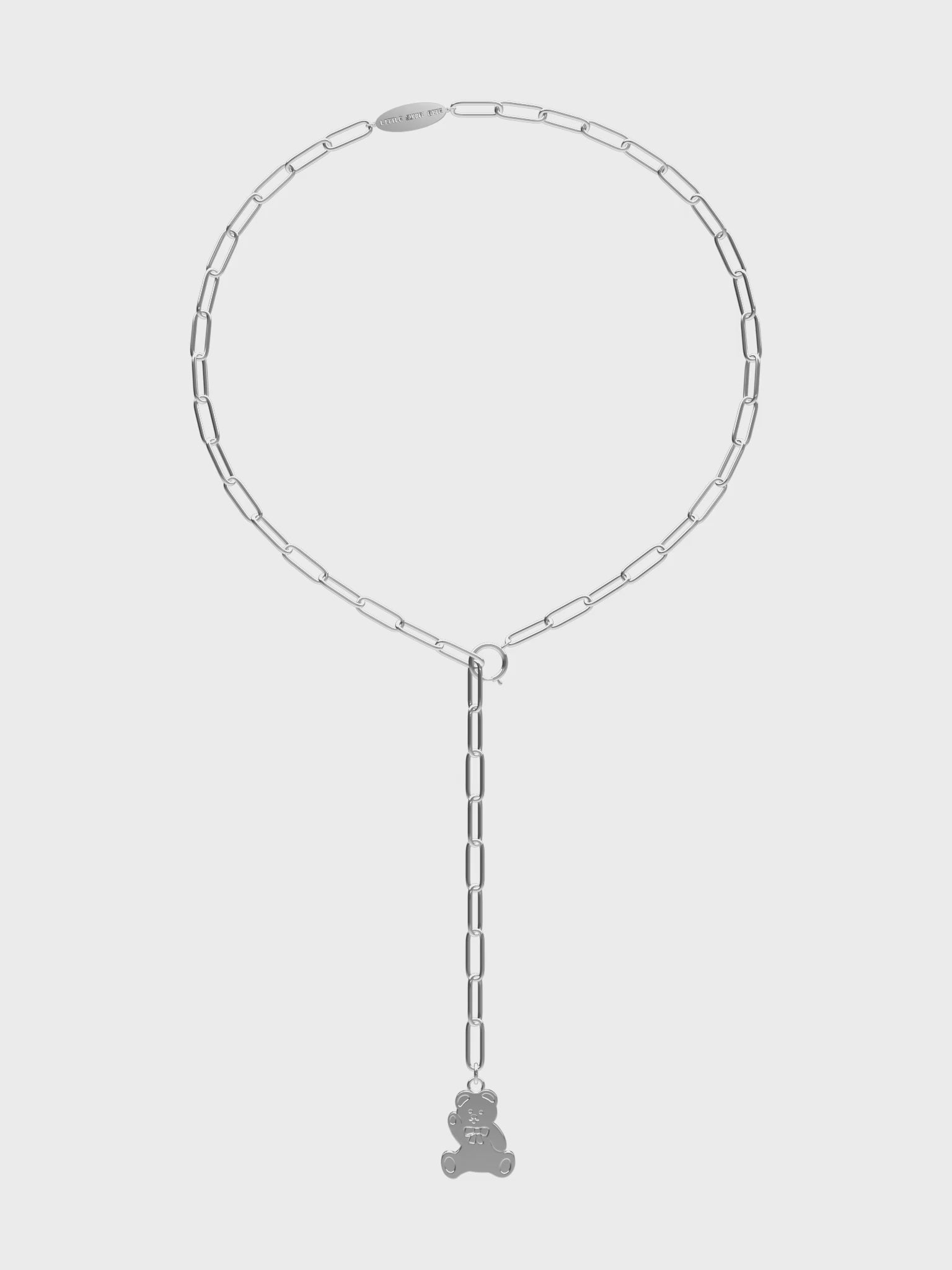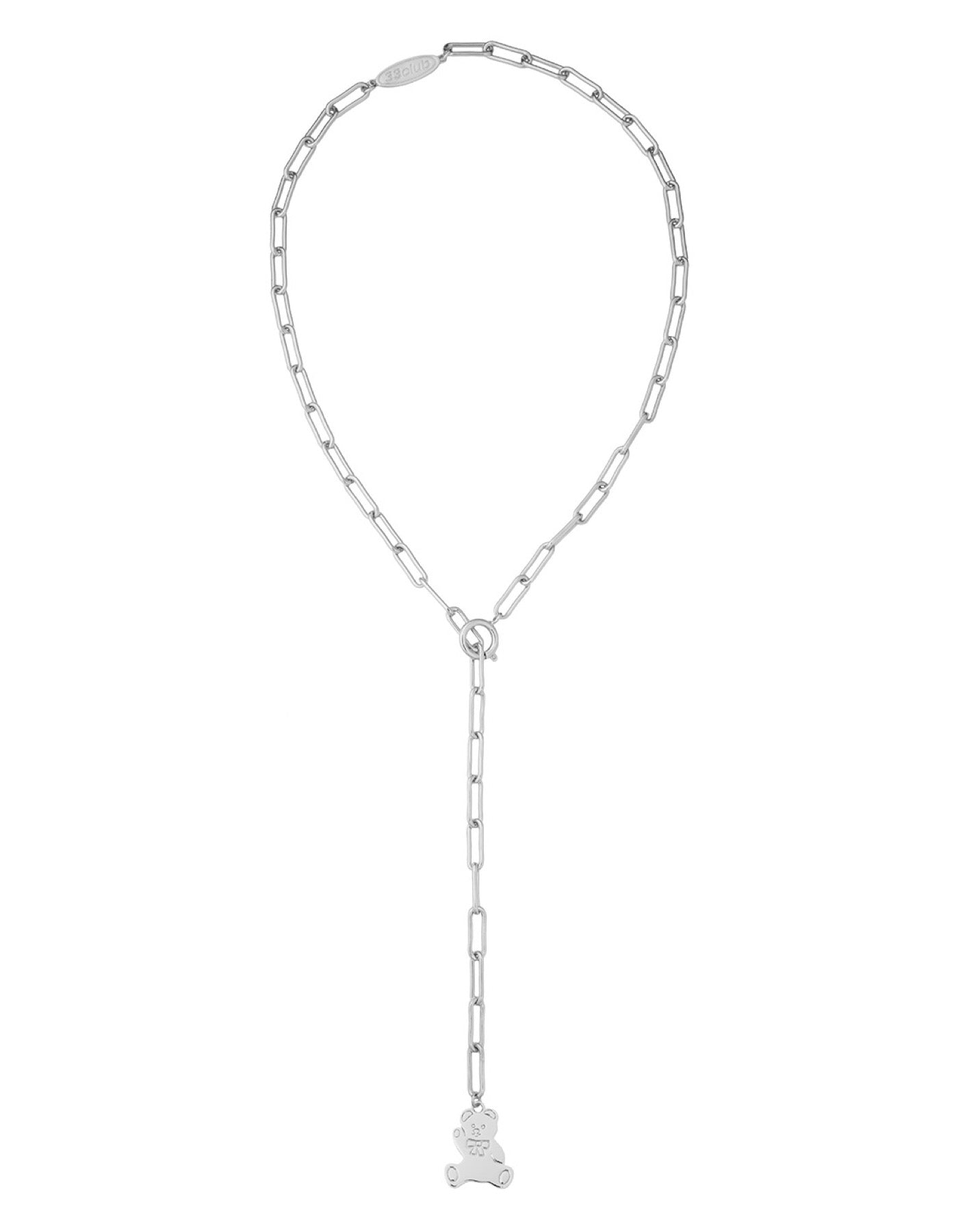 くまのオブジェクトが付いたロングネックレス。別売りのチャームと組み合わせてアレンジを楽しむことができます。留める位置を変えると長さの調整も自由自在です。