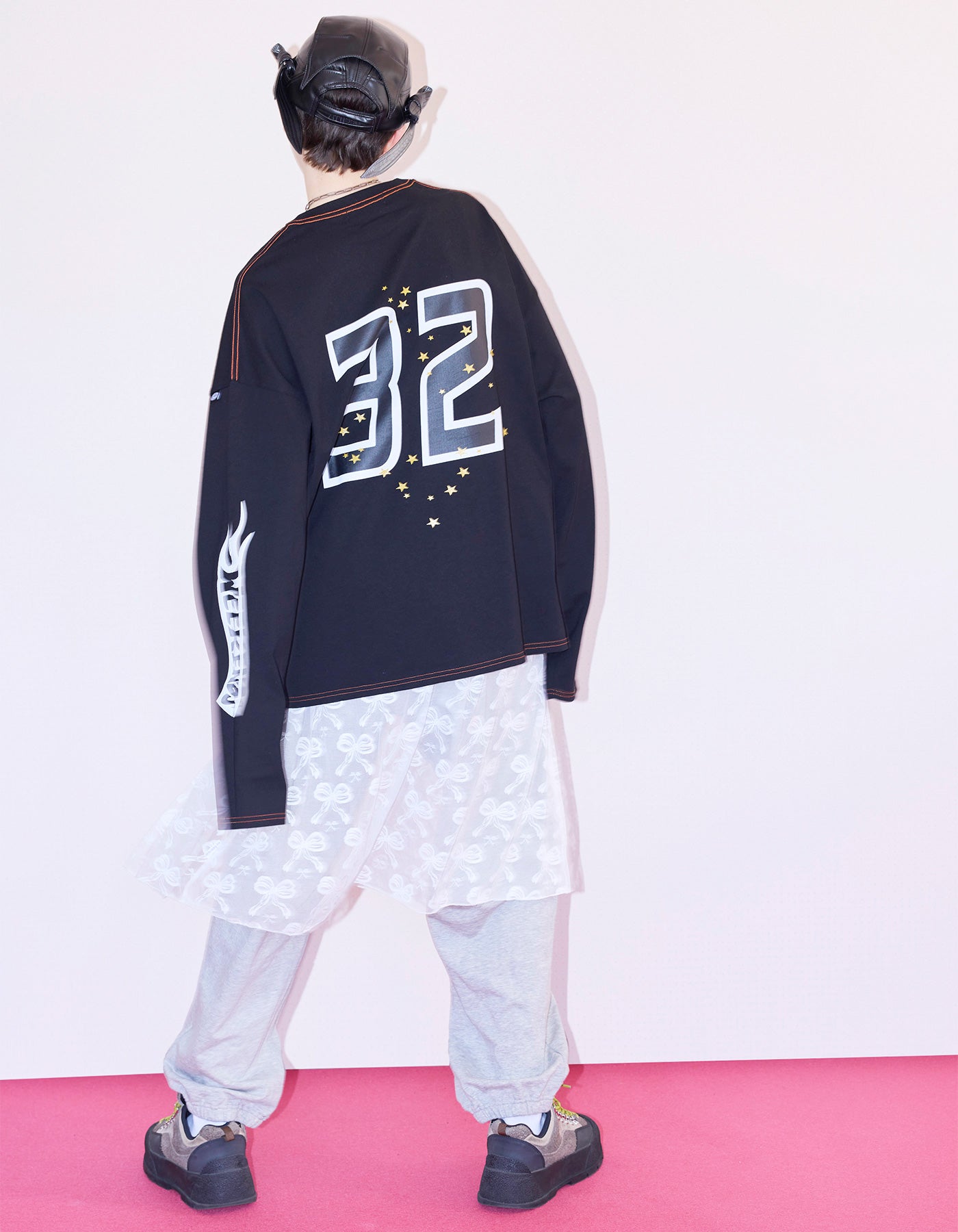 ピンク×イエローは袖と背面にも贅沢にプリントされています。