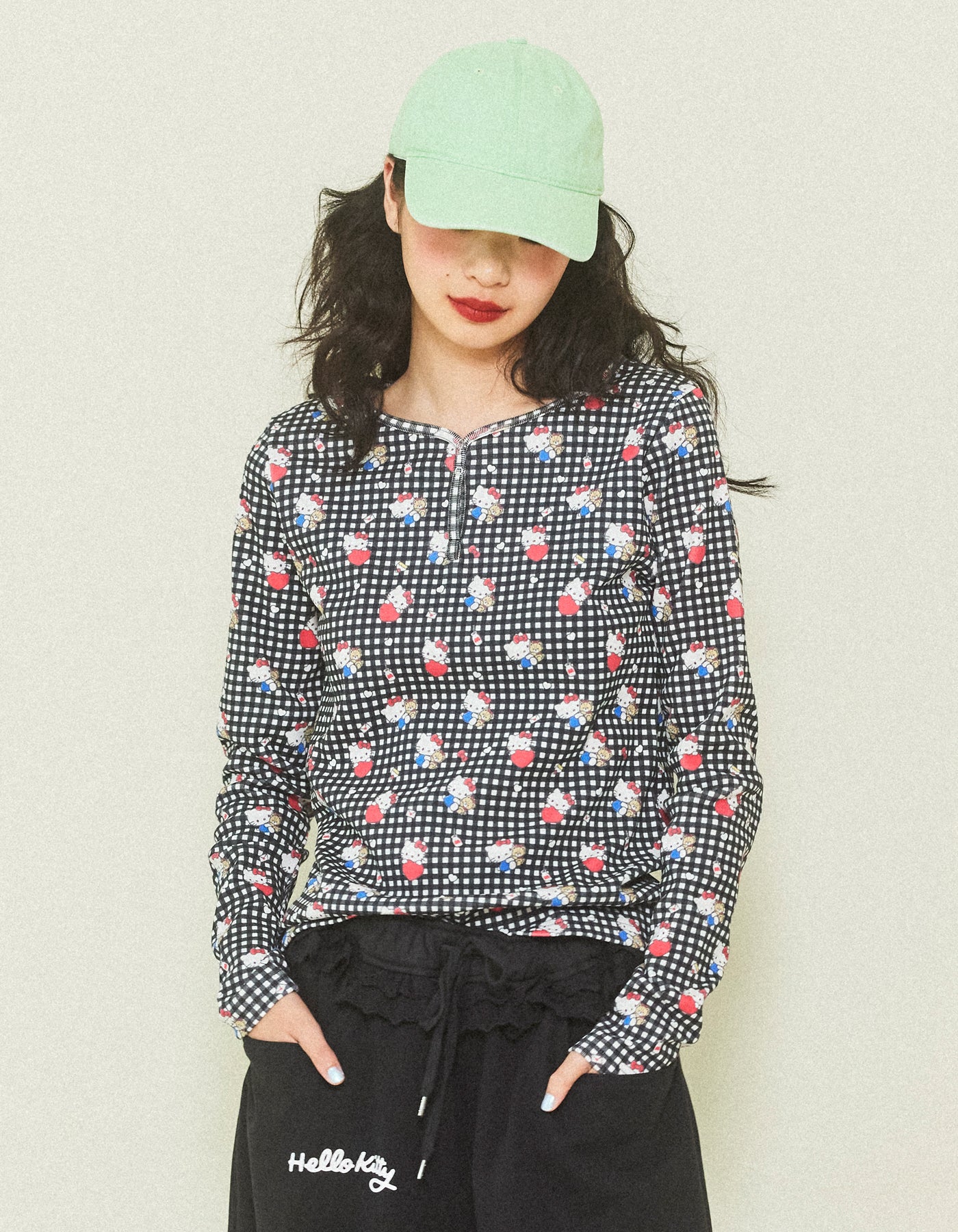 hello kitty x little sunny bite print tops / BLACK