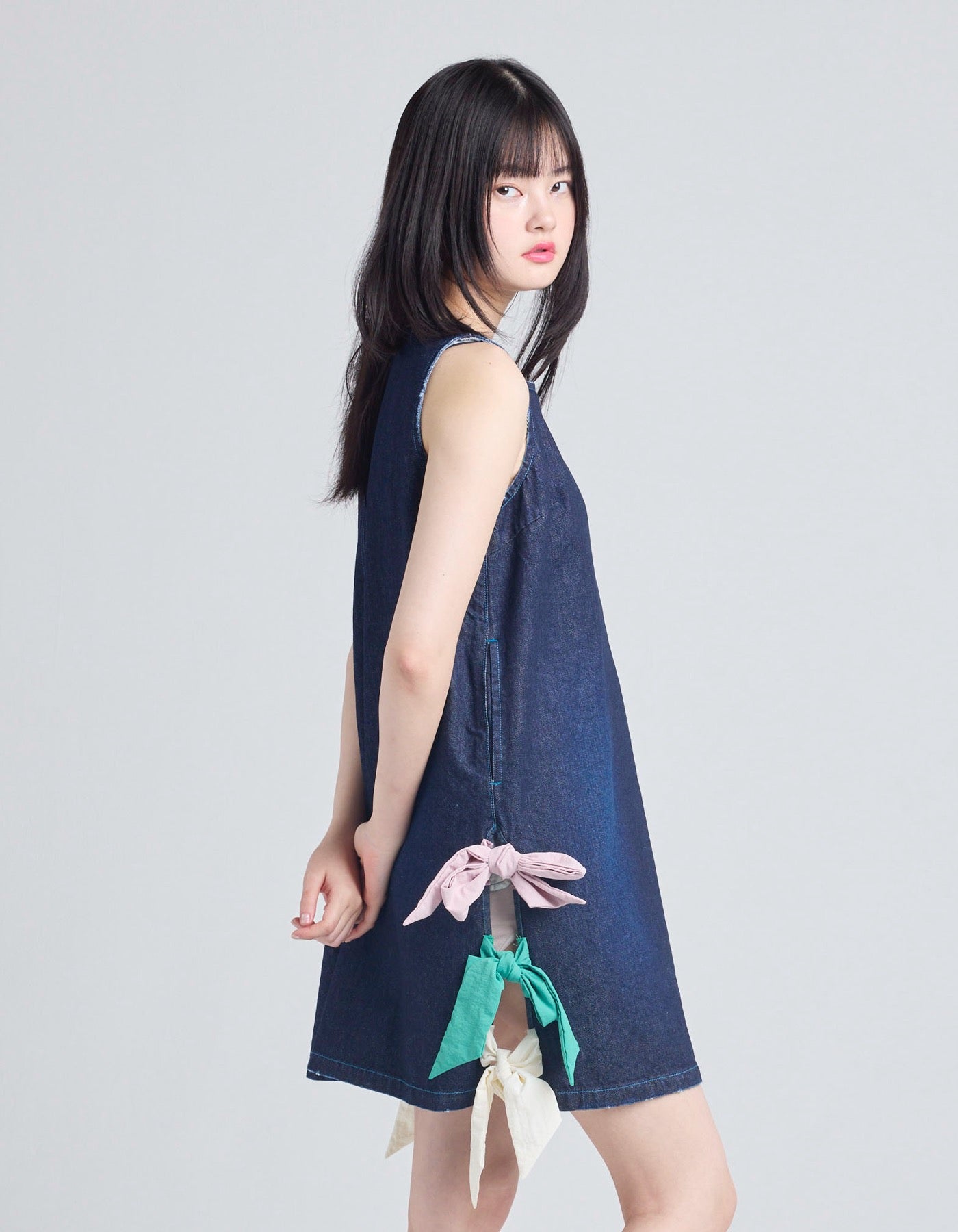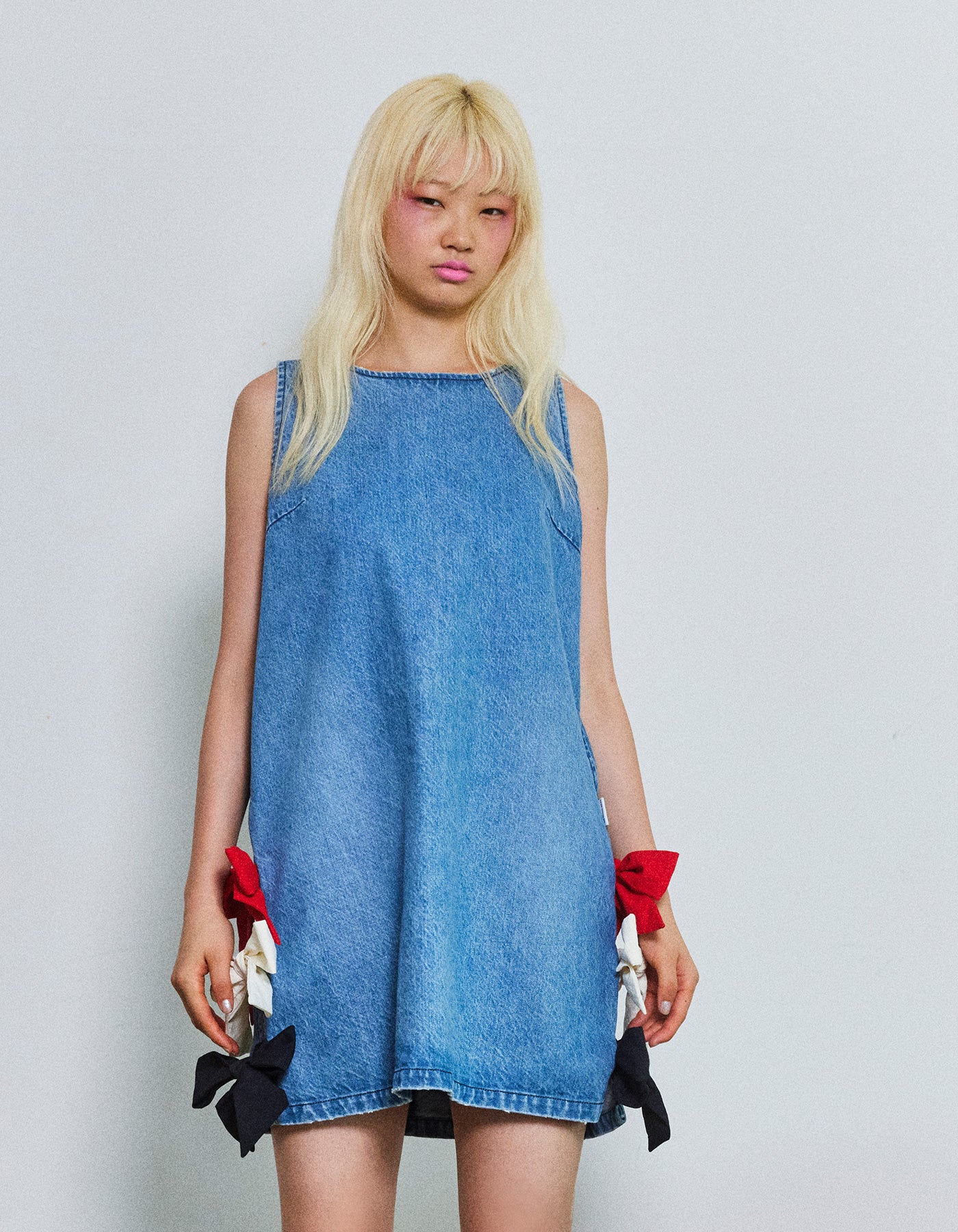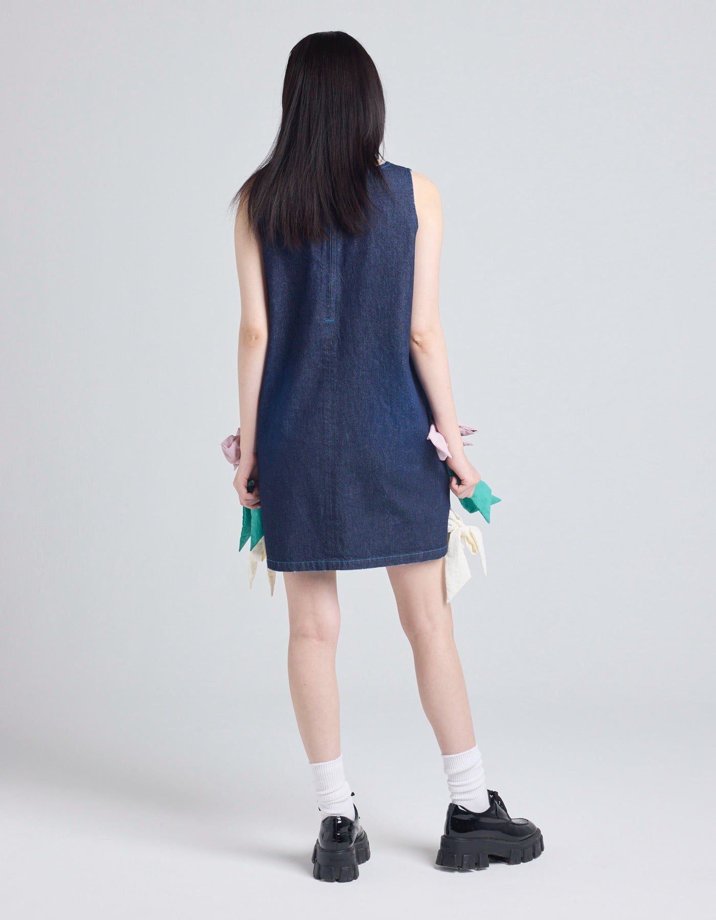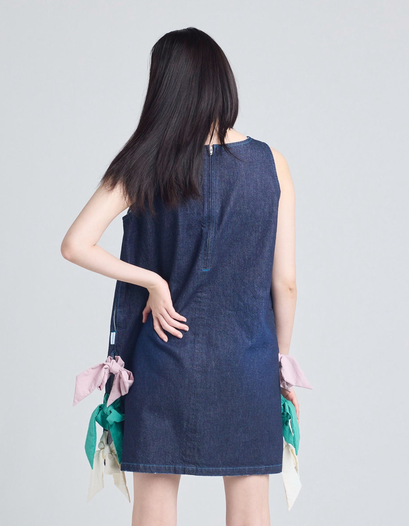 denim ribbon mini dress / INDIGO