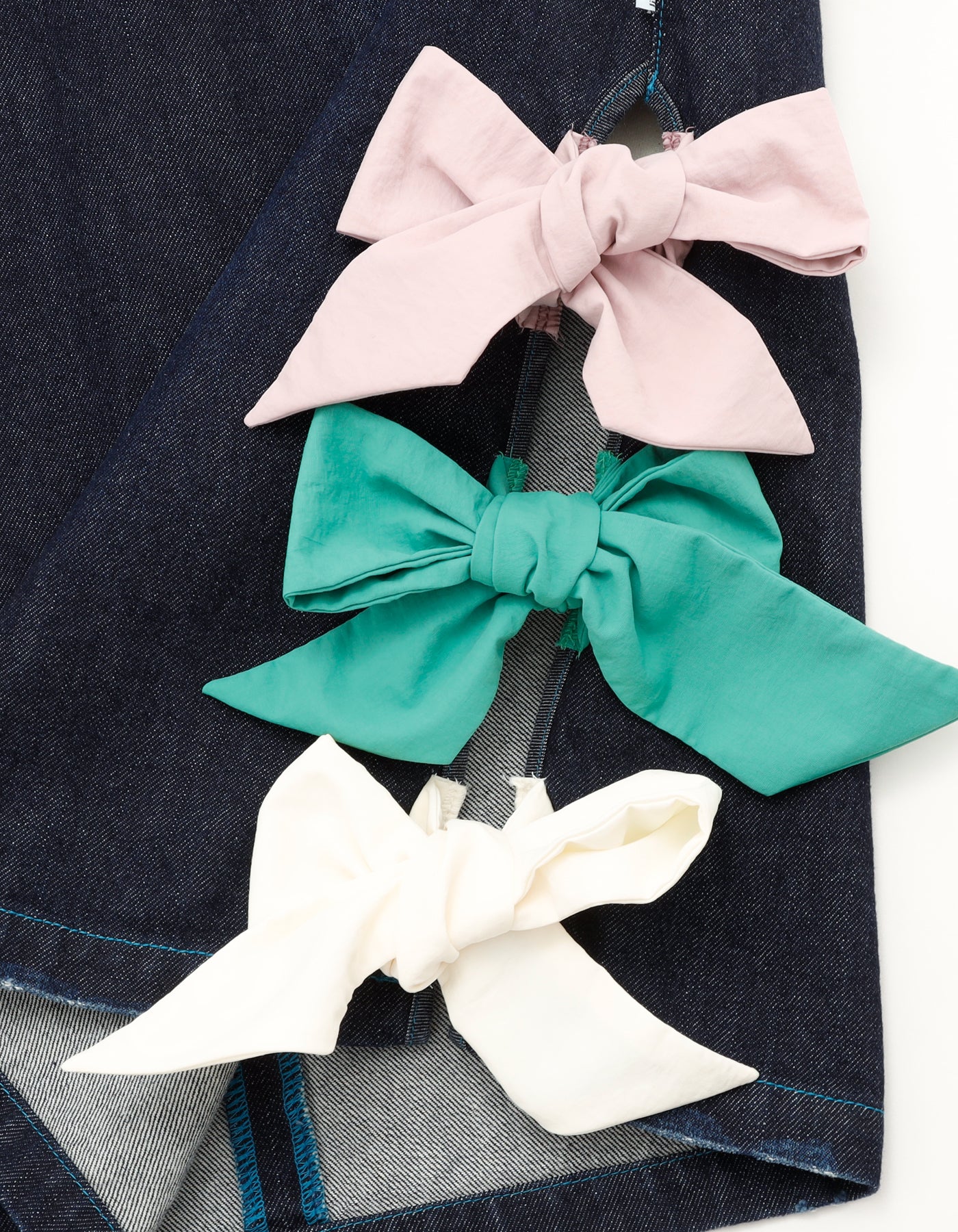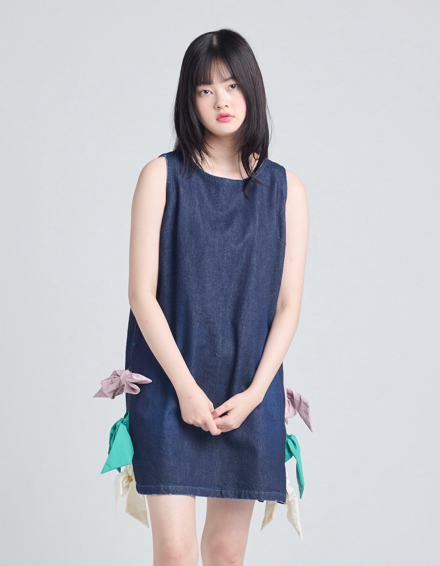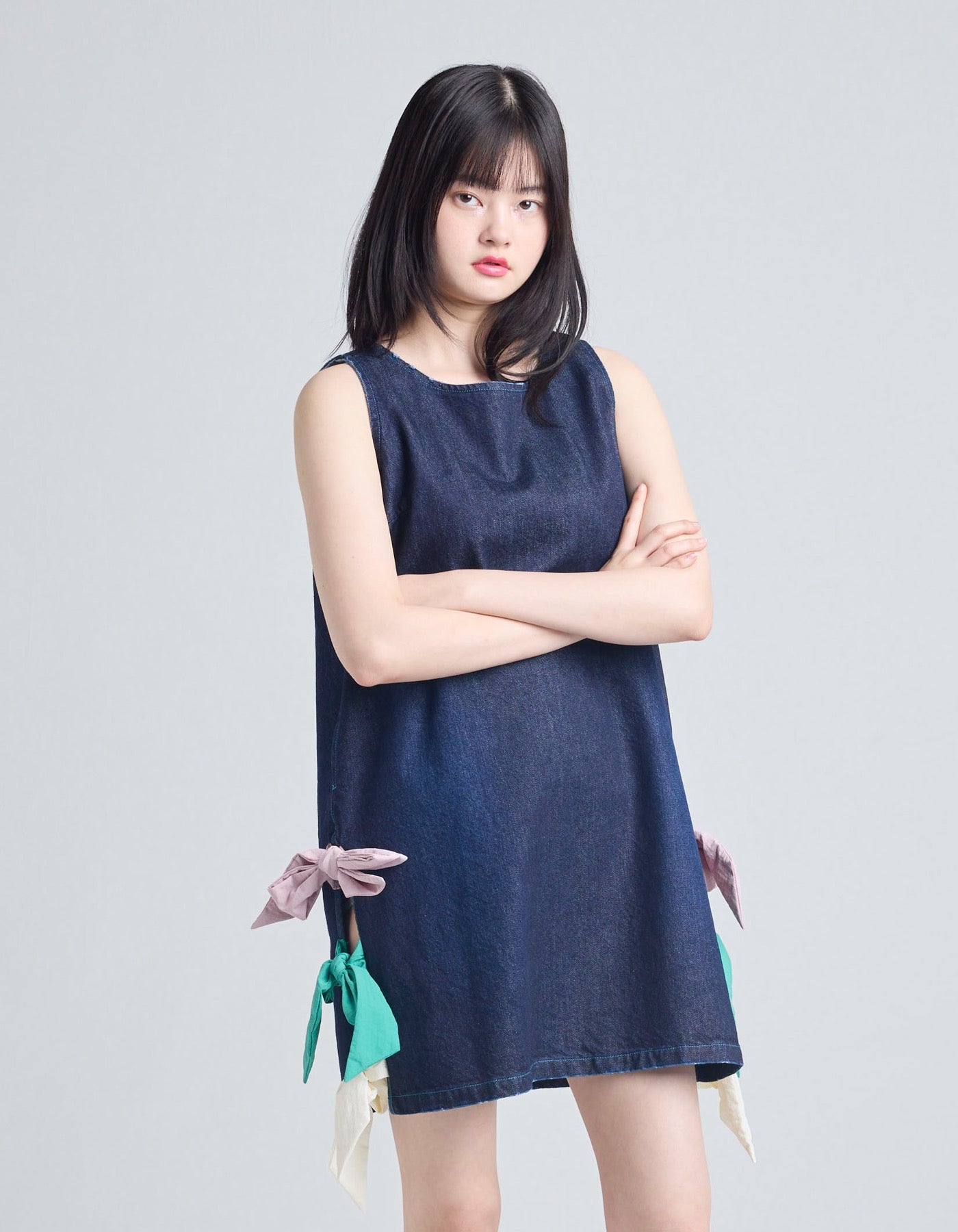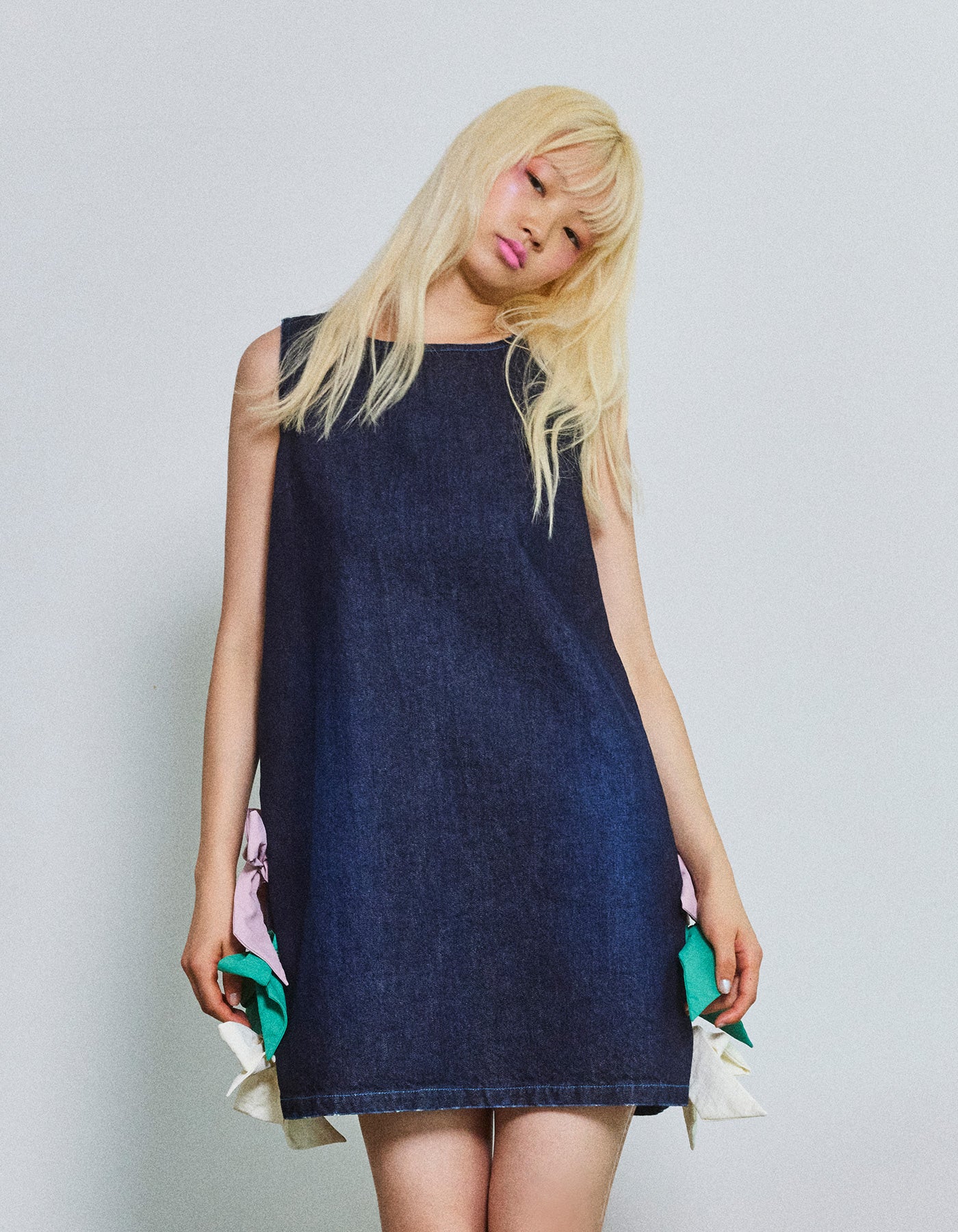denim ribbon mini dress / INDIGO