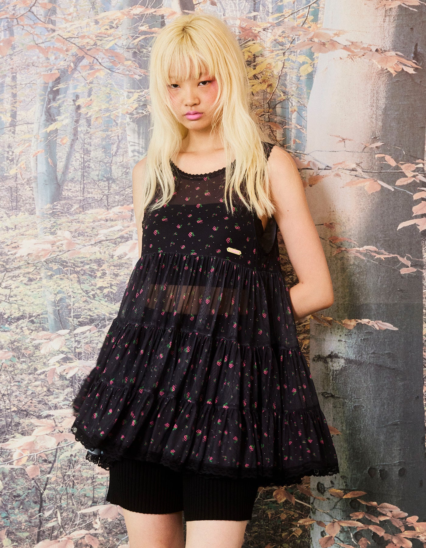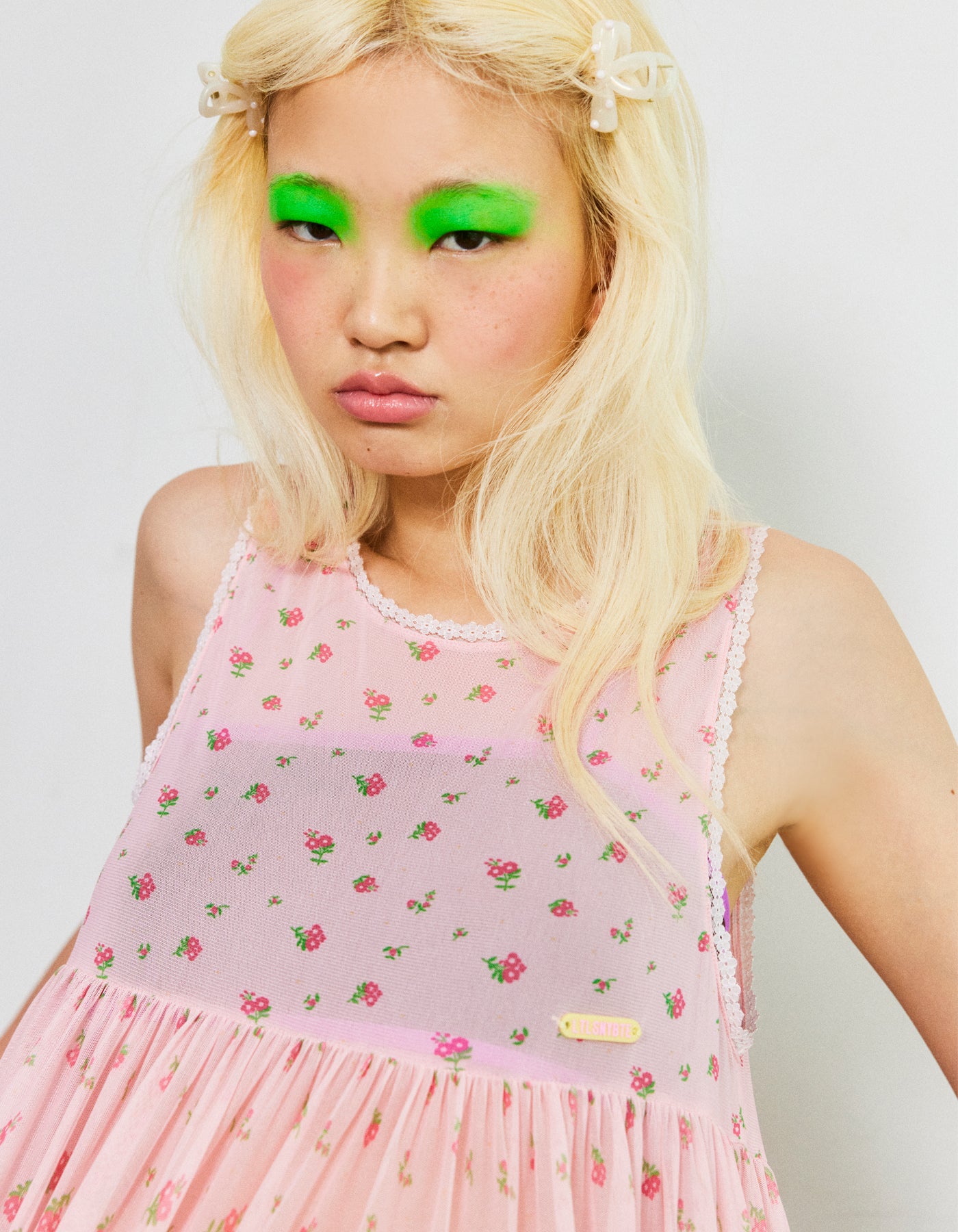 original floral tulle dress / PINK