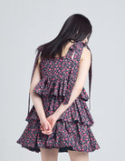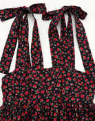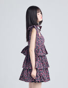 This tiered dress features an original rose pattern from little sunny bite. The three tiers of ruffles make it very cute, and the length can be adjusted with the shoulder straps.