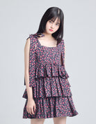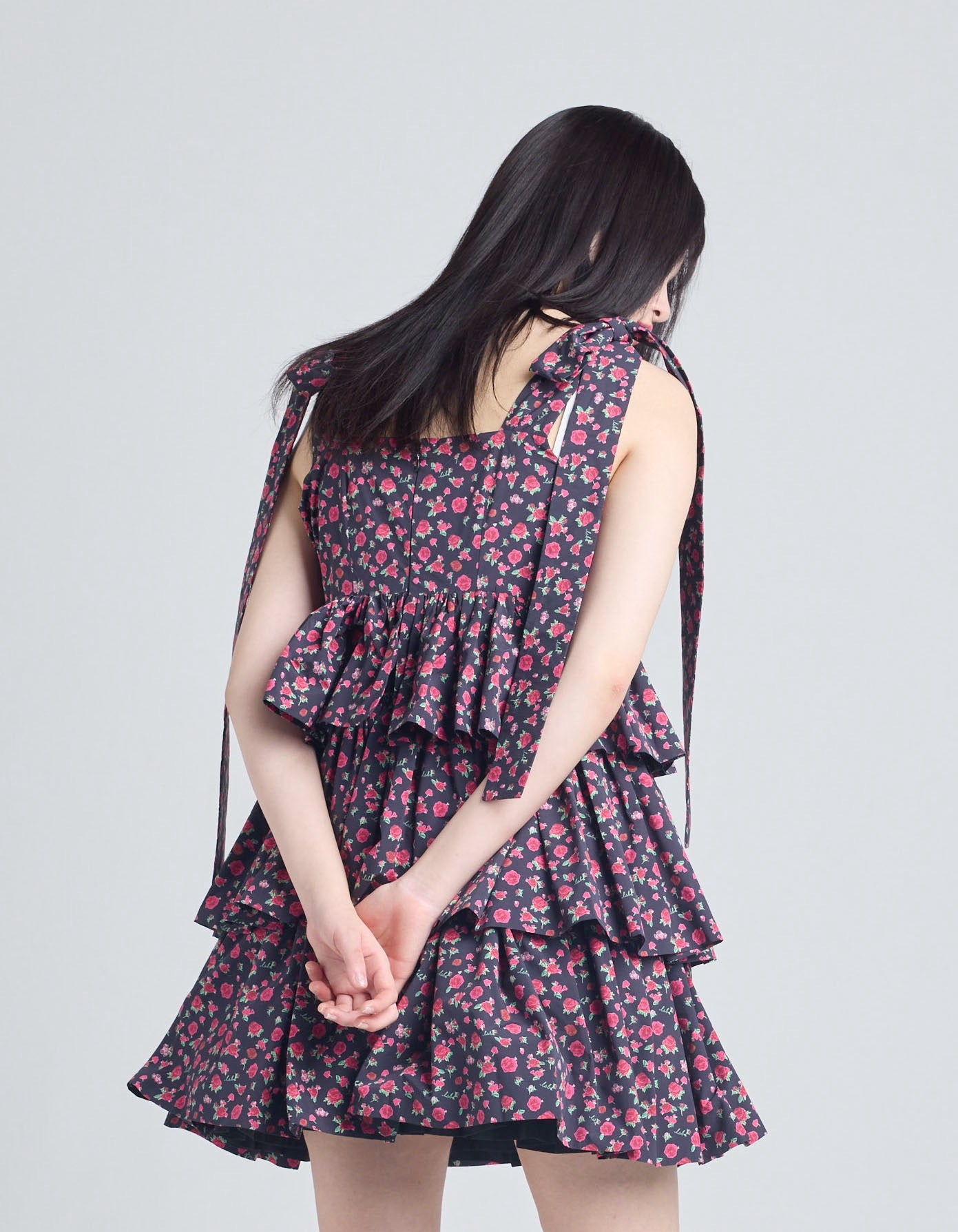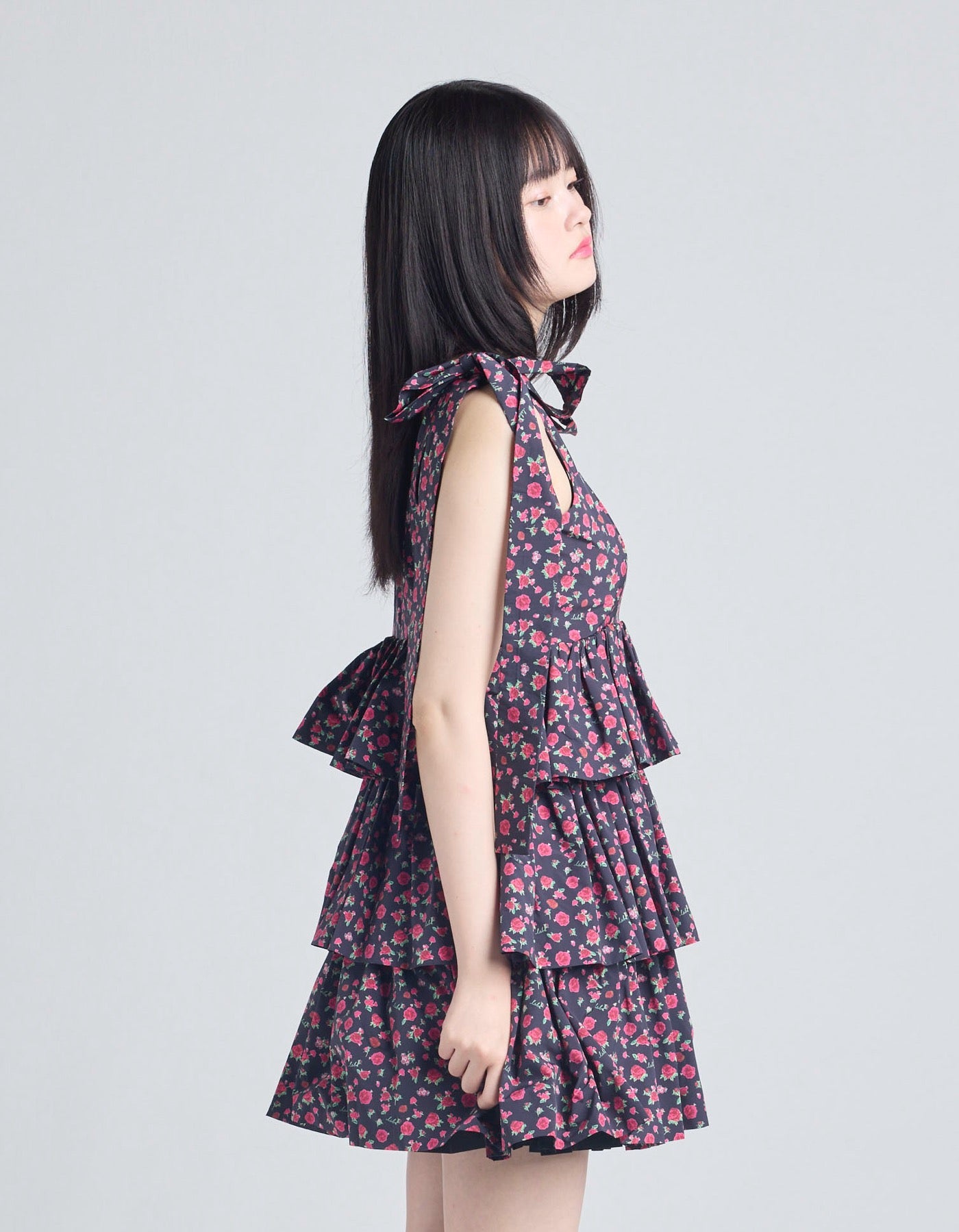 rose tiered dress / BLACK