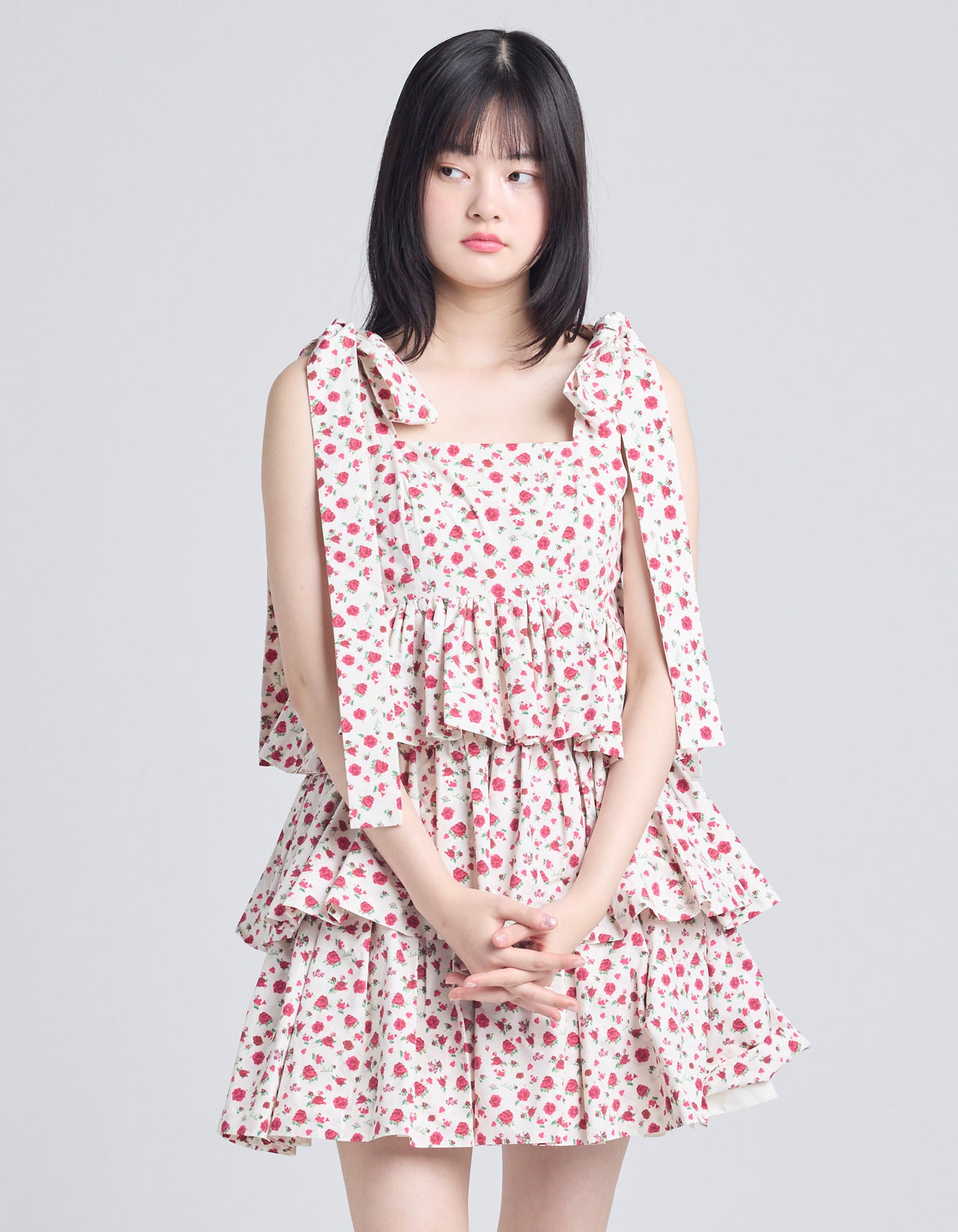 rose tiered dress / IVORY