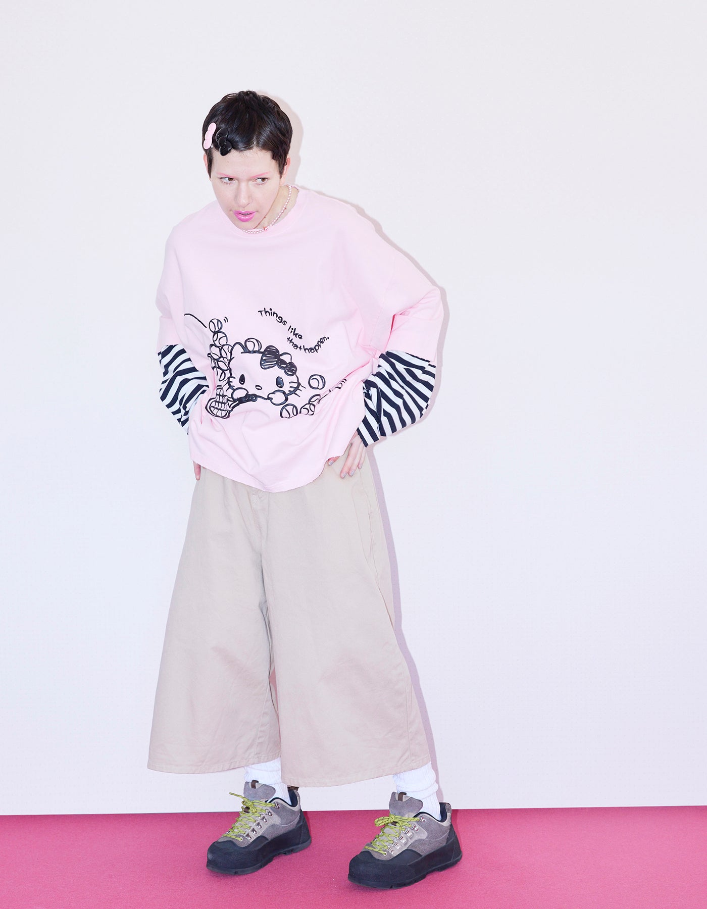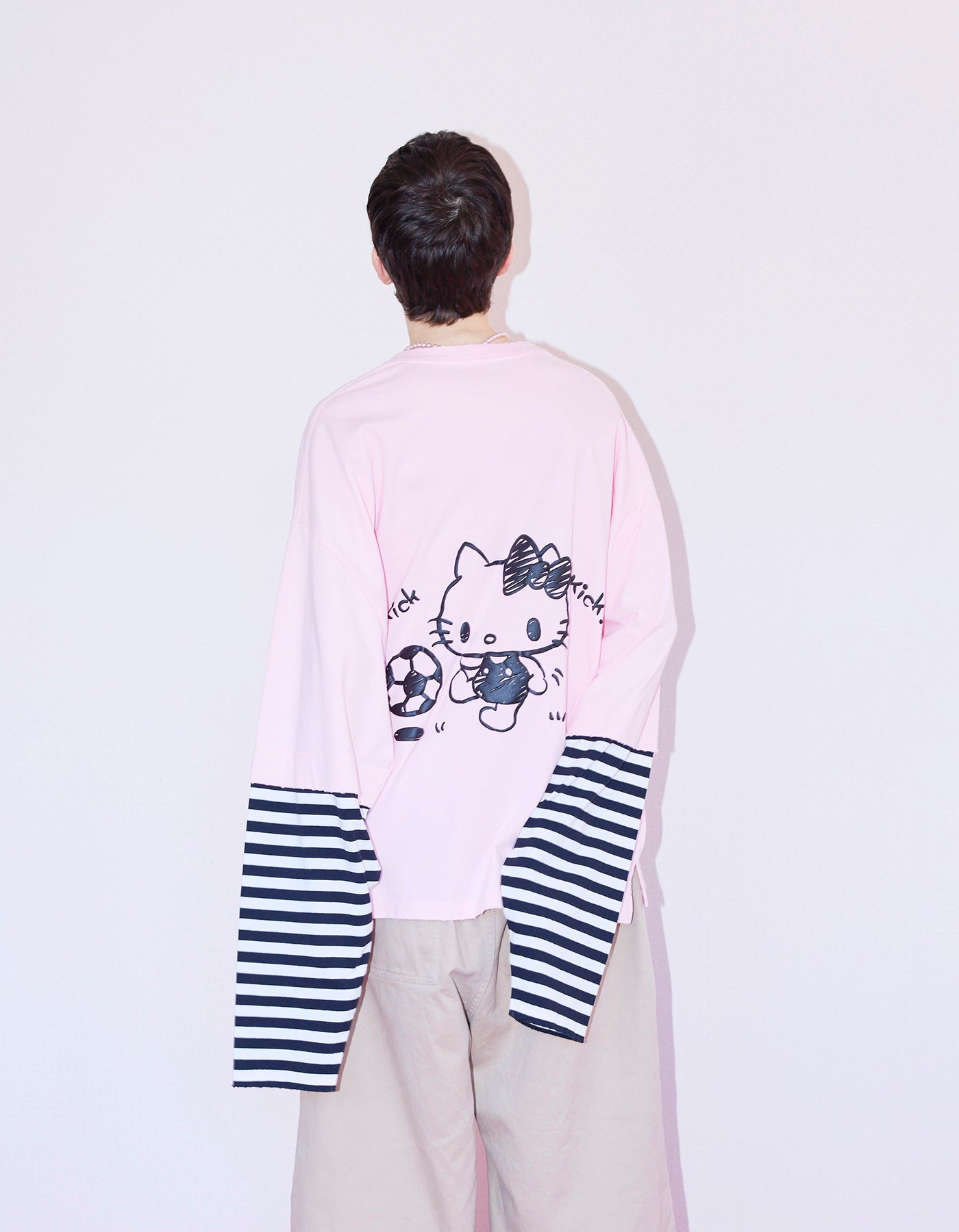 hello kitty x little sunny bite fake layered long tee / PINK