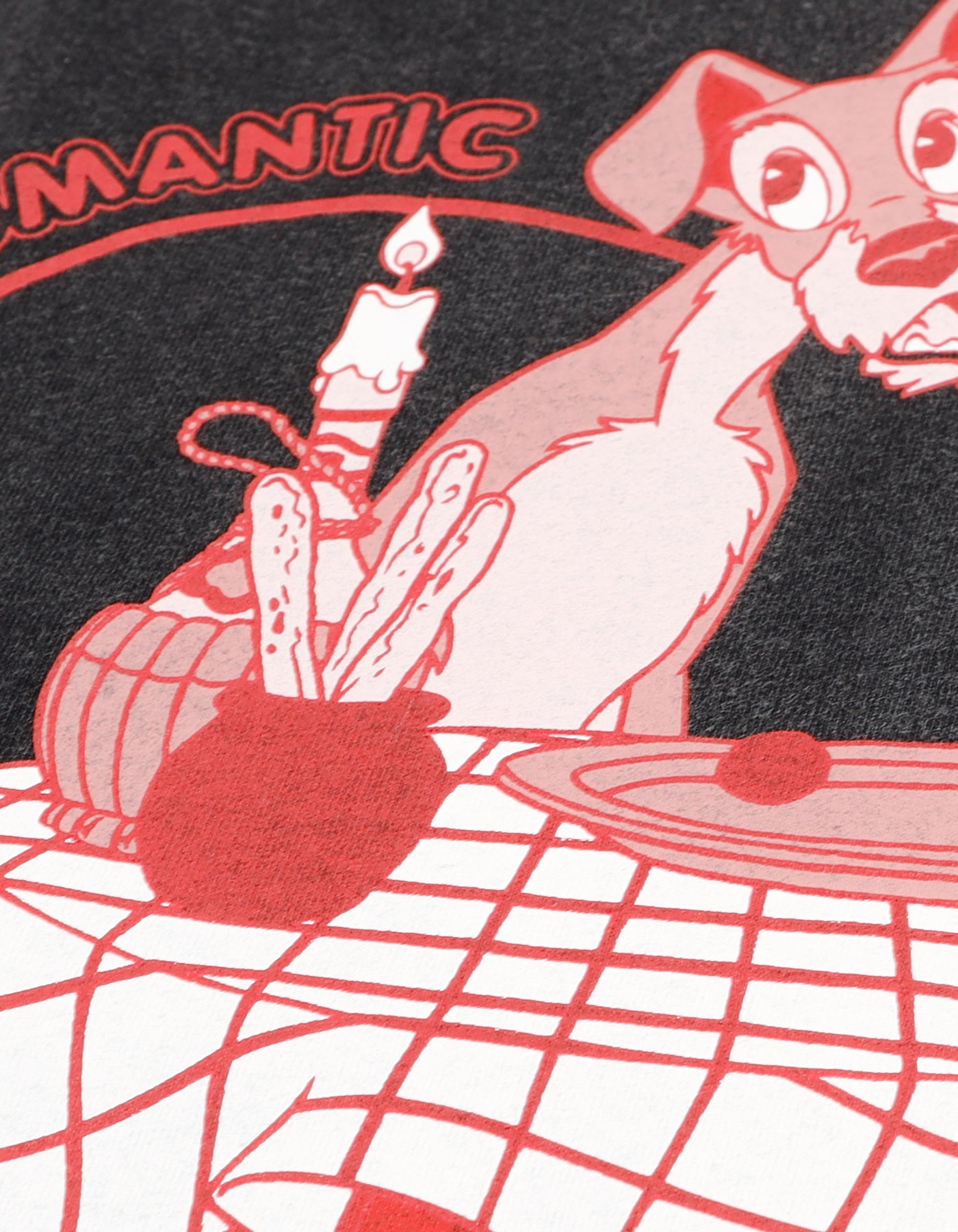 A long-sleeved T-shirt printed with classic art of Lady and the Tramp from "Lady and the Tramp" embracing each other.